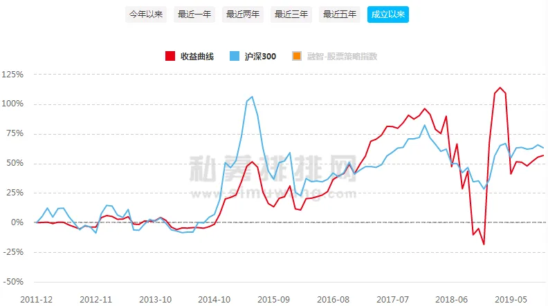 以某排名在前20位的股票私募产品为例,尽管该私募产品今年以来收益率超过100%,但2018年该产品一度回撤至1元净值以下。而自2011年12月该产品运作以来,近8年间该产品的累积收益率,也只是与沪深300指数同期涨幅大体相当。