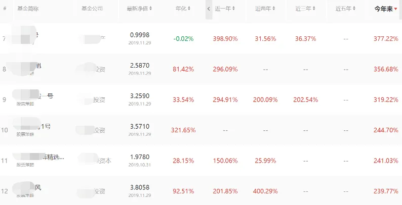 私募排排网股票私募业绩榜单排名情况显示,截至目前,今年股票私募产品收益率十强的门槛达244.70%,前九名产品的年内收益率均在300%以上。