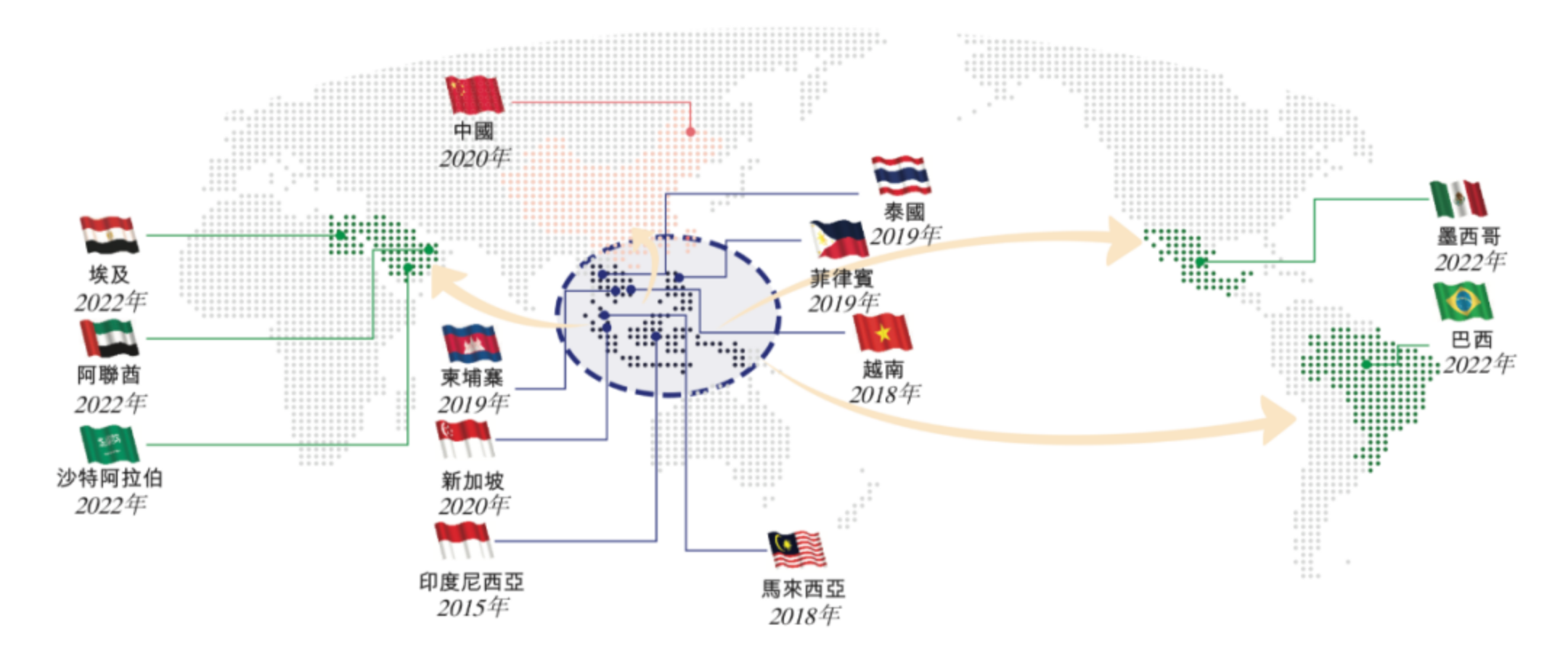 成立于2015年的极兔速递从印尼市场起步,2018年至2019年先后拓展至越南、马来西亚、菲律宾、泰国和柬埔寨等东南亚国家,2020年进一步拓展至新加坡和中国,而后在2022年延伸至沙特阿拉伯、阿联酋、墨西哥、巴西和埃及等拉丁美洲和中东地区的新兴市场。