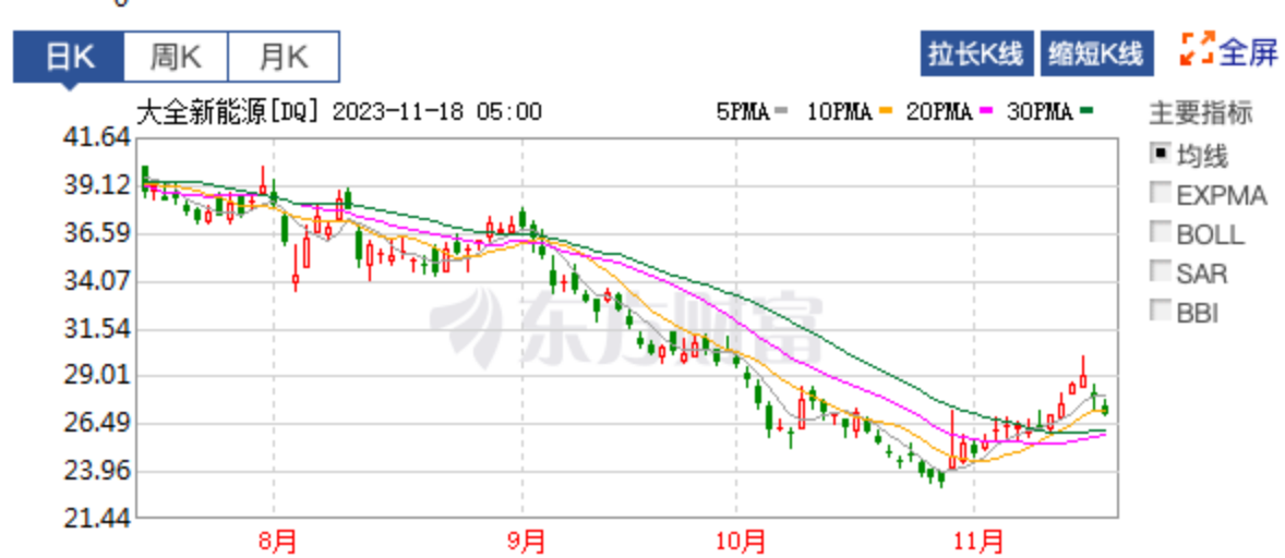 大全能源拆分自美股上市公司大全新能源(DQ.N)。大全新能源2010年在美股上市,成功募资7600万美元(约人民币5亿元),遇上整个新能源光伏行业供过于求,2012年、2013年连续亏损,股价也一度连续30个交易日低于1美元,收到纽交所退市警告。