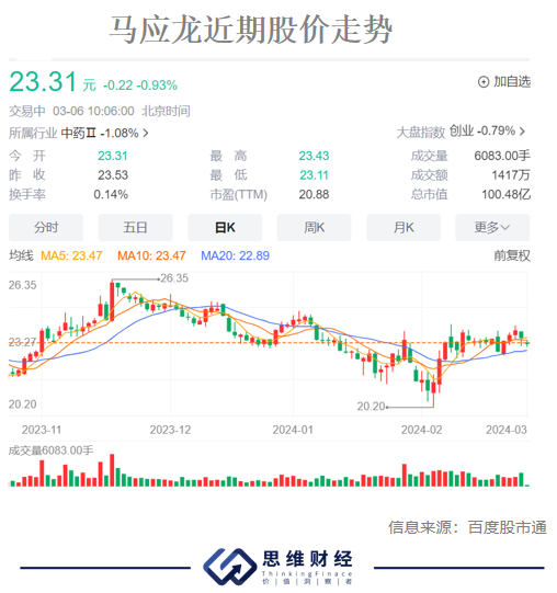 目前,部分业内人士对其仍然看好。华福证券最新研报指出,看好马应龙治痔类产品的品牌力以及“医+药+养”全产业链的发展潜力。预测2023年至2025年公司营收分别为32.37亿元、38.78亿元、43.23亿元,增速为-8%、20%、11%,归母净利润分别为5.07亿元、6.14亿元、6.64亿元,增速为6%、21%、8%。