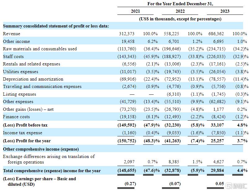 近几年,随着海外餐馆数量的增多,特海国际的收入持续增长,但净利润却直到2023年才实现扭亏。招股书显示,2021年、2022年、2023年,特海国际的收入分别约3.12亿美元、5.58亿美元、6.86亿美元,对应的净利润分别约-1.51亿美元、-0.41亿美元、0.25亿美元。