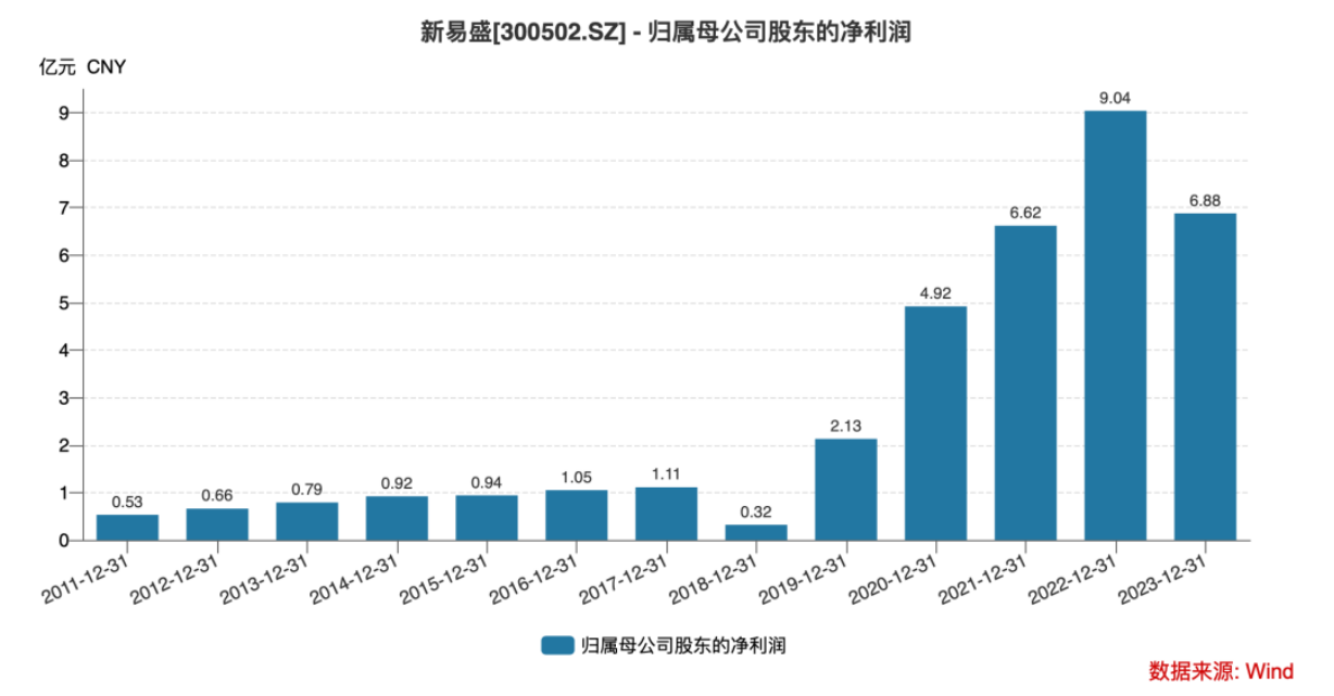 据悉,新易盛客户包括知名海内外的互联网、通讯公司,乘着AI和芯片的东风,公司近年来业绩大增,尤其是2022年,公司净利润涨了36.51%。不过2023年,由于占比最高的点对点光模块营收有所下降,再加上外部经营环境的影响,新易盛2023年净利润减少了23.82%。