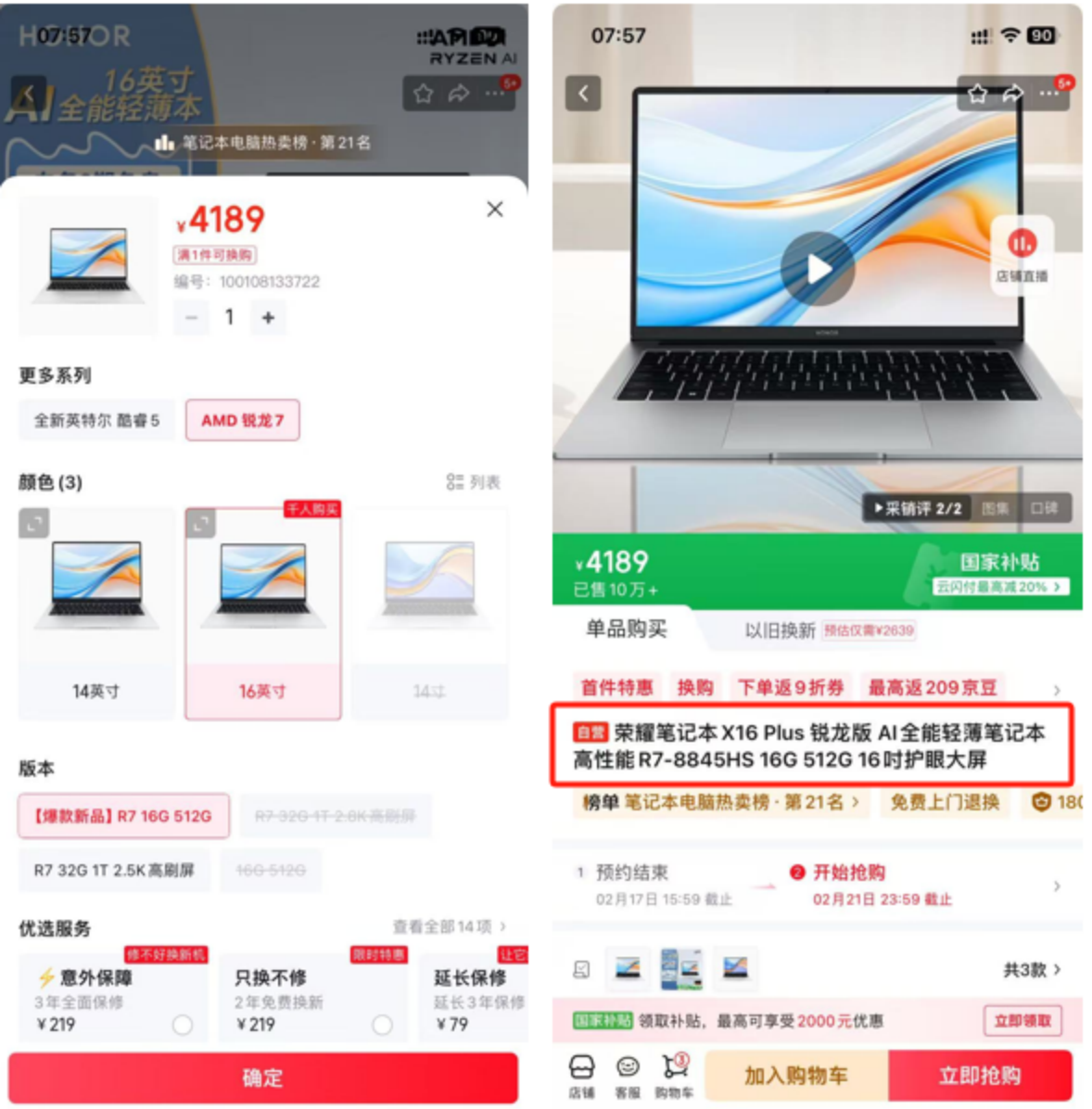 同理,中端机型价格的持续下探,让客户的选择空间更多,同样也在影响荣耀笔记本出货量增长。且20%电脑国补和15%手机国补、20%家电国补类似,短期虽能拉动终端动销,但同样会加速终端PC销售渠道分化,或将影响荣耀经销商拓展更多分销渠道。