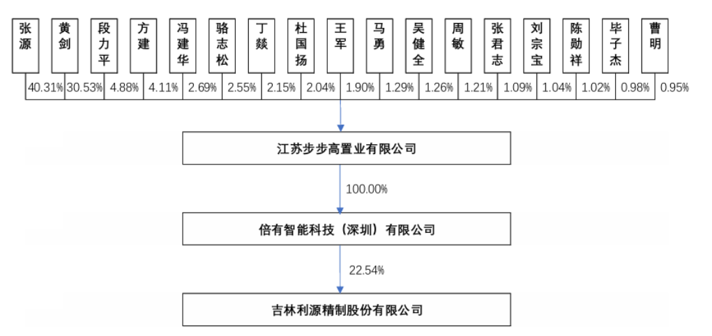 公告显示,江苏步步高将以3800万元的“低价”,收购倍有智能科技(深圳)有限公司(简称“倍有智能”)100%股权,而倍有智能持有利源股份8亿股股份,占利源股份总股本的22.54%,是利源股份的控股股东。待上述股权完成收购后,利源股份的实控人将变为张源。