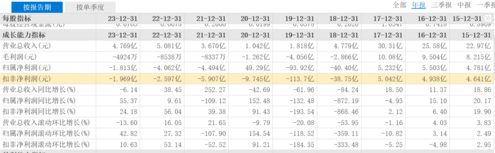 财报显示,2018年至2024年第三季度,利源股份在扣非净利润上已经连亏7年多,其中2019年巨亏113.7亿元,2024年预计仍是亏损。