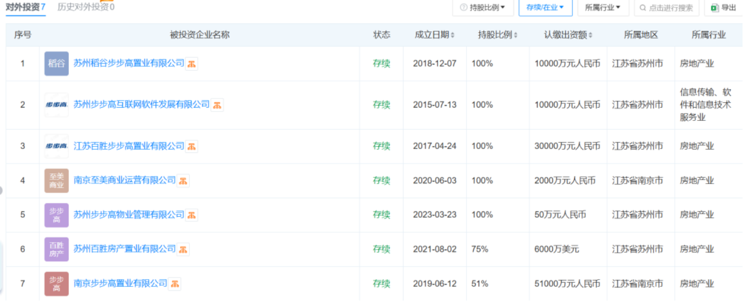 天眼查显示,这次收购利源股份控股股东的江苏步步高,其主业是房地产开发、销售,旗下共有7家全资或控股子公司,其中6家公司是和房地产行业高度相关的公司,比如物业公司、商业运营公司或其他以房地产业务为主的置业公司。