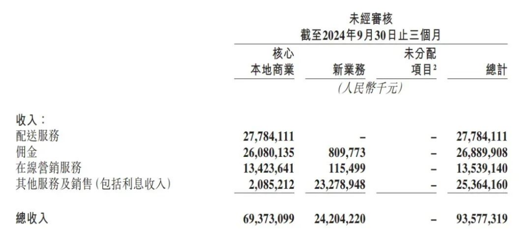 财报显示2024年7-9月,美团平台配送服务收入为277.8亿元,约占总收入三成。
