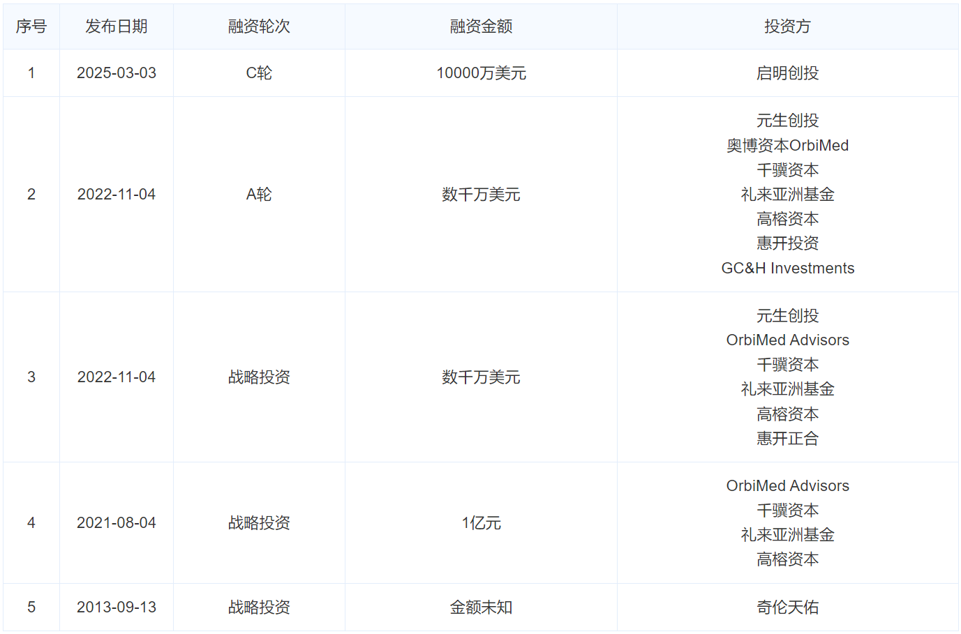 帕母医疗历次融资一览表,融中根据公开信息整理: