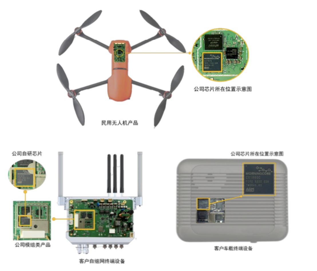 宸芯科技主要专注于无线通信SoC芯片及模组类产品的研发、设计与销售,致力于为客户提供自主、安全、可靠的无线通信芯片及解决方案。公司主要为客户提供芯片及模组类产品、芯片定制服务及相关技术服务,产品及服务广泛应用于专用通信、宽带物联网、车联网及移动通信等领域。