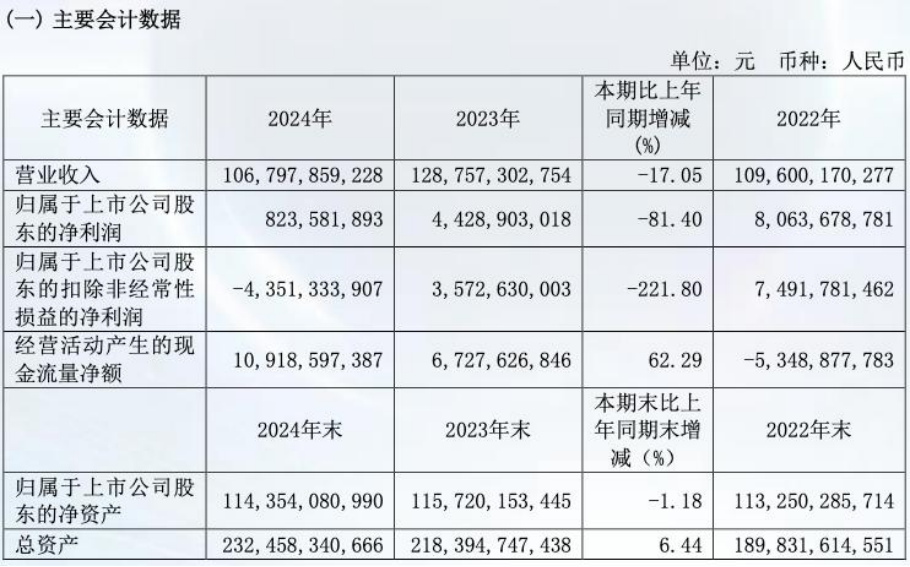 财报数据显示,2024年广汽集团营业收入为1067.98亿元,同比下滑17.05%;实现归母净利润8.24亿元,同比下滑81.40%;扣非净利润更是录得亏损43.51亿元,上年同期盈利35.73亿元;经营活动产生的现金流量净额为109.19亿元,同比增长62.29%。