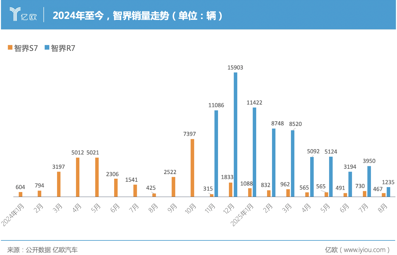 在2024年6月的文章《靠华为改命,尹同跃没退路了》一文中,笔者就预计,如果参考问界的销量曲线,智界可能也有出现销量波动。但是,问界通过缩短产品迭代周期让销量回升,这一策略很有可能也会出现在智界上。
