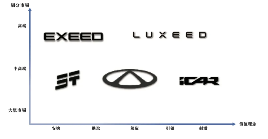 更重要的是,奇瑞本就销量占比不高的新能源车,还主要集中在大众市场和中高端之间,例如iCAR、捷途汽车和奇瑞汽车的主品牌——奇瑞。