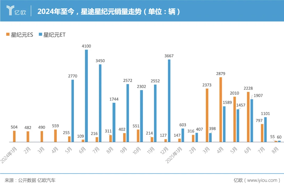 可到了8月,这款车型的销量也来到了两位数——60辆,比星纪元ES高5辆。