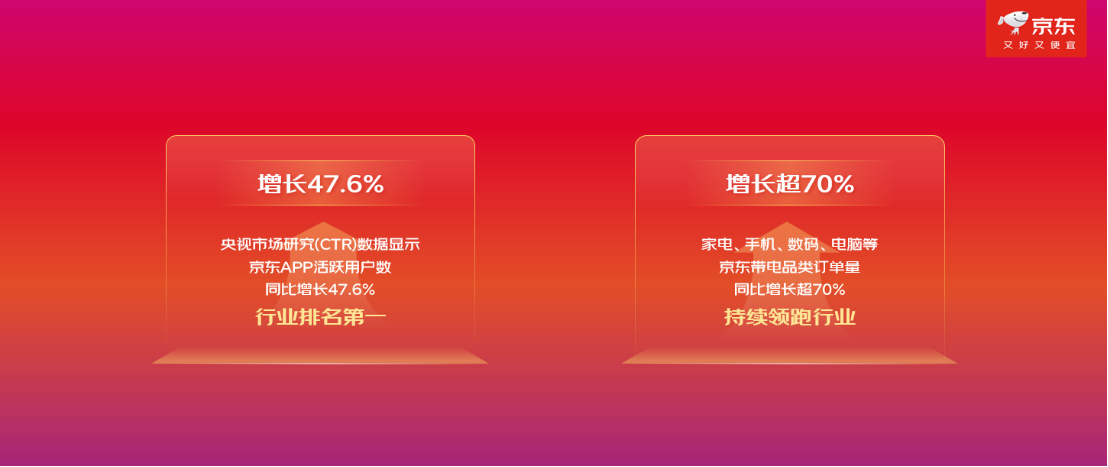健康消费成为市场新热点。体重管理用药、补益用药的成交新用户数同比增长超5倍;以燕窝、阿胶为代表的传统滋补品和鱼油、赖氨酸等现代营养补充剂,以及动态血糖仪、呼吸机等健康器械的成交额同比增长超2倍。新能源相关品类持续高速增长,自营电动自行车成交额同比增长500%,新能源汽车充电桩增长102%。京东全球购服饰品类成交额同比增长300%,浪琴品牌同比增长超10倍,百年品牌STANLEY、白鹤分别同比增长40倍、5.7倍。