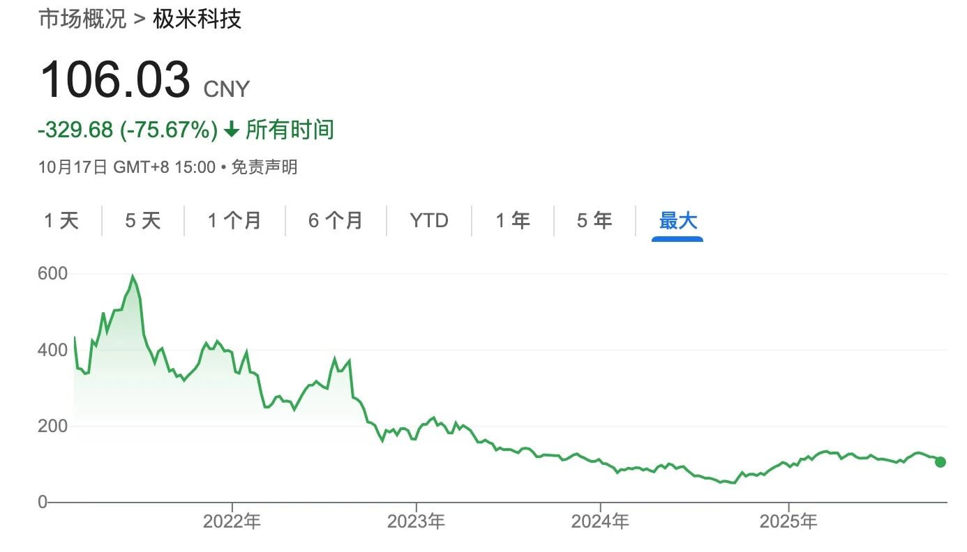 另一方面的关注来自资本侧。2021年3月,极米科技在上交所科创板上市,上市首日股价暴涨296%,股价高峰时其市值冲到了430亿元;而如今,极米科技的市值蒸发超过80%,截至10月18日,极米科技在A股科创板的市值约为76.44亿元。
