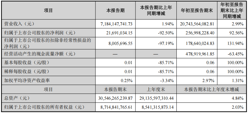 大北农2025年第三季度报告显示,年初至9月底,其实现营业收入207.44亿元,同比增长2.99%;归属于母公司股东的净利润为2.57亿元,同比提升92.56%;扣非净利润1.79亿元,同比增长131.94%。从同比增速来看,多个核心指标实现由负转正,体现出较强的恢复势头。