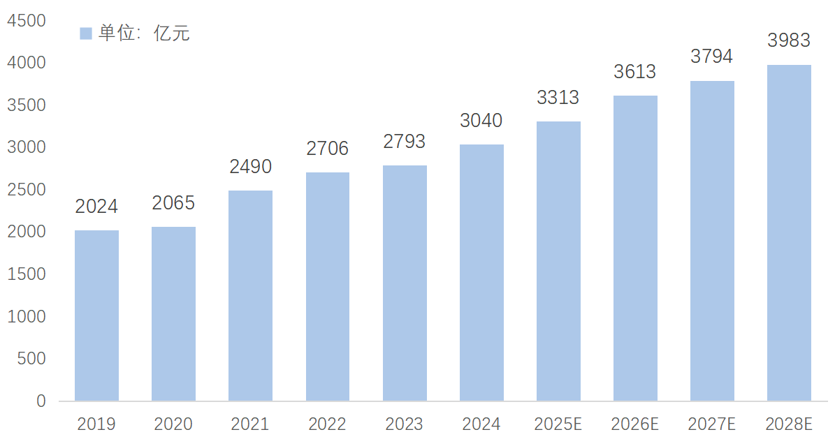 图表5 2019年—2028年中国宠物行业市场规模及预测