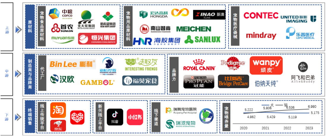 近年来宠物经济相关产业蓬勃发展,已形成相对完整的产业链。