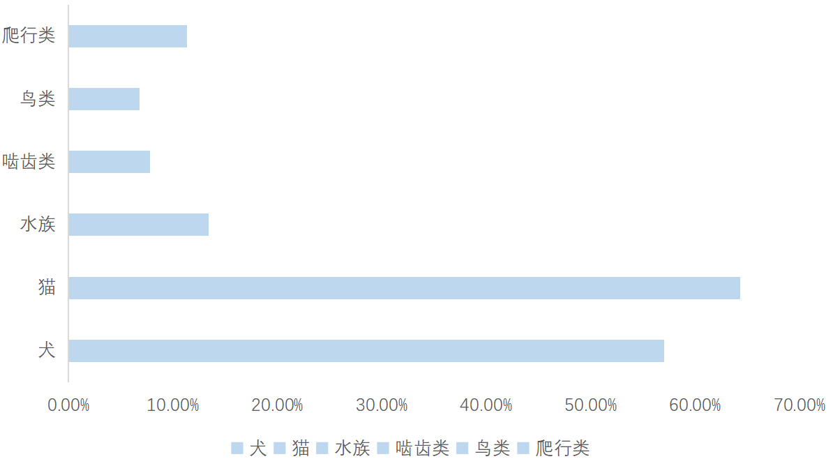 中国宠物行业呈现出明显的结构性特征,从细分赛道来看,宠物食品、宠物医疗、宠物用品是宠物行业的主要组成部分,其中宠物食品占比最大。从宠物类型分布来看,养宠类型以犬猫为主,但随着消费观念的升级和个性化需求的驱动,涵盖水族、爬行类、啮齿类、鸟类等异宠逐渐成为更多人饲养宠物的选择之一。从渠道来看,线上线下渠道均衡发展,但由于部分产品特点,线下渠道仍具备一定优势。
