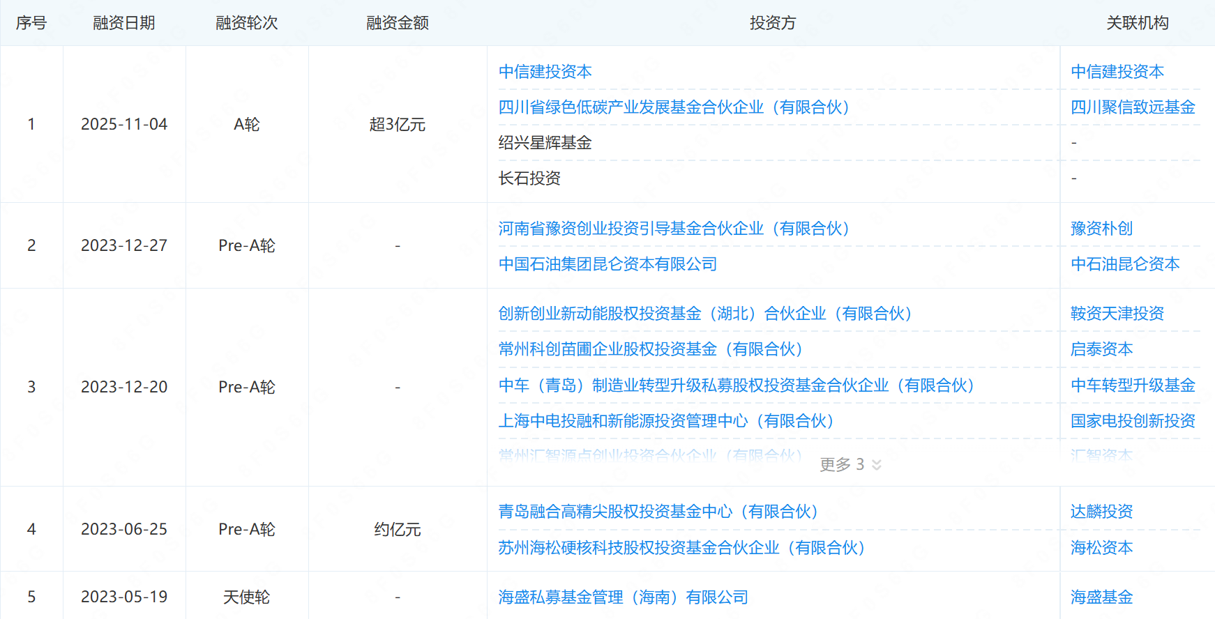 此前,星辰新能已完成三轮Pre-A轮融资,历史融资方包括中石油昆仑资本、启泰资本、海松资本等。