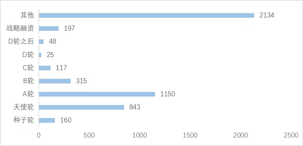 从近10年中国机器人行业投融资事件轮次分布情况来看,目前该行业的投融资活动以早期和初创期为主,其中天使类和A轮投资数量最多。