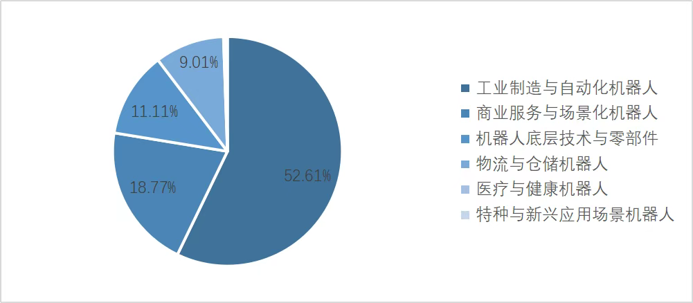 近十年中国机器人赛道投融资呈现显著分化格局,资本优先布局商业化路径明确、能快速提升效率或创新服务的领域,呈现“技术-场景双轮驱动”特征。工业制造与自动化机器人以1947.72亿元规模占据绝对主导地位,凸显其作为核心技术领域的产业基石地位。商业服务与场景化机器人(694.87亿元)及底层技术与零部件赛道(411.13亿元)紧随其后,反映资本对技术成熟度与规模化应用价值的双重认可。物流仓储(333.47亿元)与医疗健康机器人(303.22亿元)凭借垂直场景的高价值需求形成中等规模市场。特种与新兴应用场景机器人(11.71亿元)虽融资量级有限,但体现资本对前沿技术探索的持续关注。