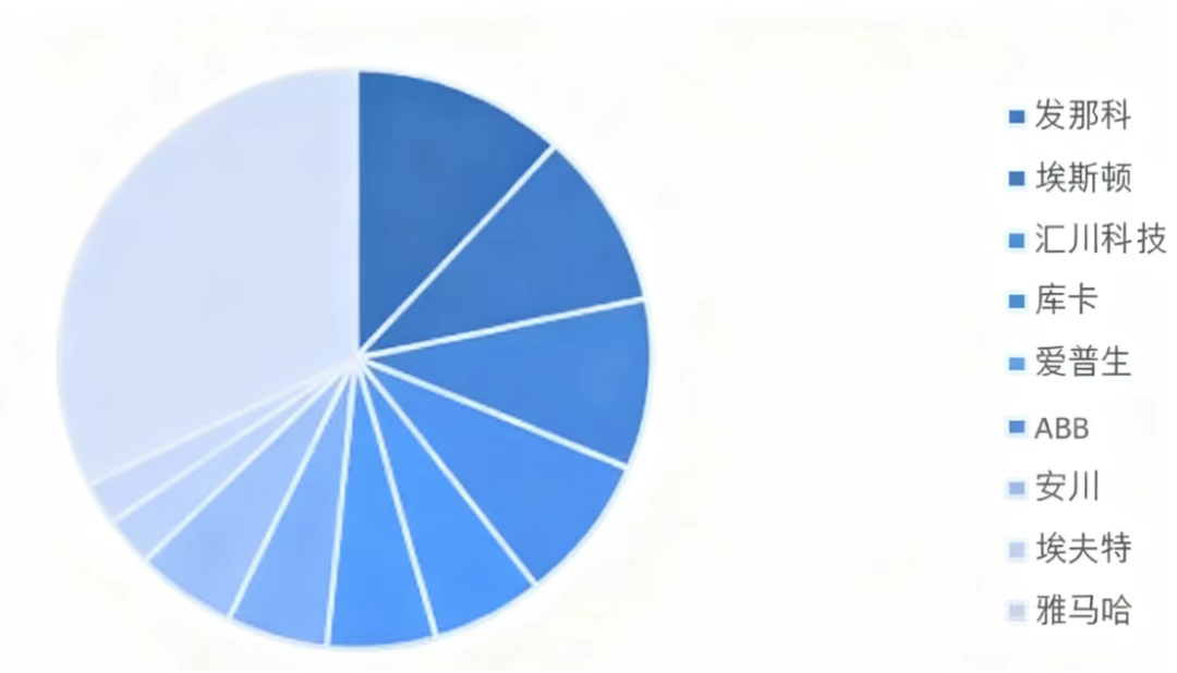 在国内工业机器人市场,发那科、爱普生、ABB和安川电机等外资品牌仍然占据一定地位。但国产工业机器人产业经过近年来的技术积累,逐渐形成自己的竞争优势。根据MIR DATABANK发布的数据,我国工业机器人整体市场出货量排名TOP10分别为发那科、埃斯顿、汇川科技、库卡、爱普生、ABB、安川、埃夫特、雅马哈、新时达,2024年前三季度发那科市场份额为11.1%,本土企业中埃斯顿、汇川技术、埃夫特、新时达进入前十。