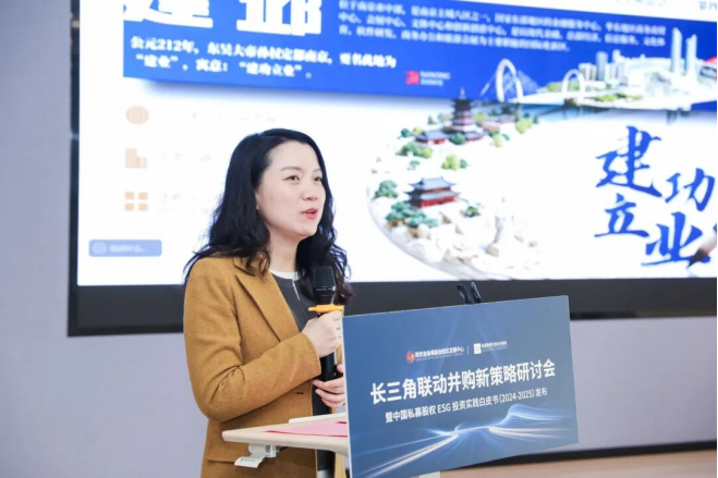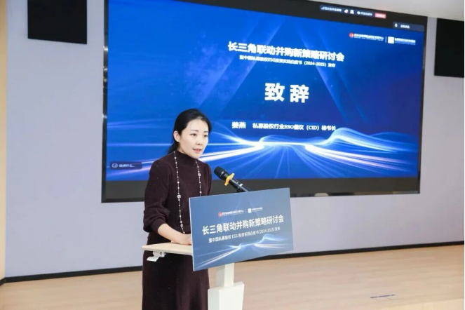 姜燕在致辞中表示,私募股权行业ESG倡议(CID)自2023年发起以来,长期得到中国创投委、陆家嘴管理局、南京金鱼嘴基金街区发展中心的大力支持,一直致力于推动中国私募股权行业ESG生态的建设与发展,不断扩大“可持续朋友圈”。当下长三角是中国并购市场最活跃的区域,也是ESG理念落地和价值创造的“先行区”,因此,CID不断积极推动长三角联动,为创新创投资源、产业、资本搭建桥梁纽带。一方面整合更多资源,促进一二级市场联动、互相交流可持续发展经验、并购业务发展机遇,推动业务落地,实现高质量与可持续发展。另一方面,将中国私募股权行业ESG实践融入全球可持续发展对话,传递中国私募股权行业负责任投资声音。