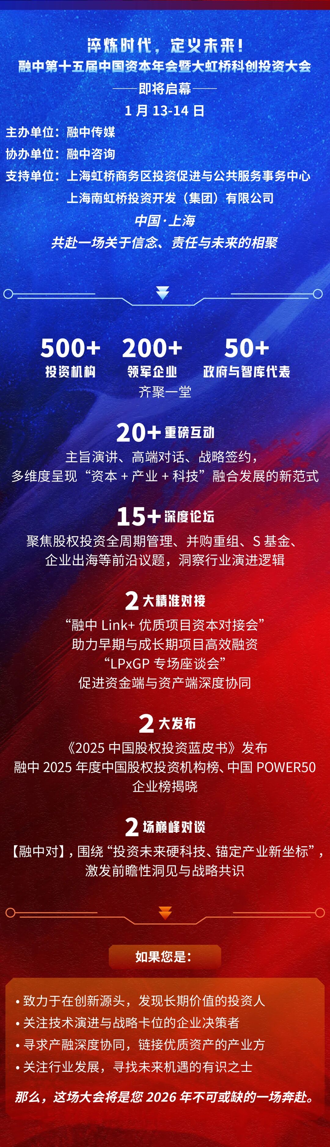 官宣 | 融中第十五届中国资本年会暨大虹桥科创投资大会
