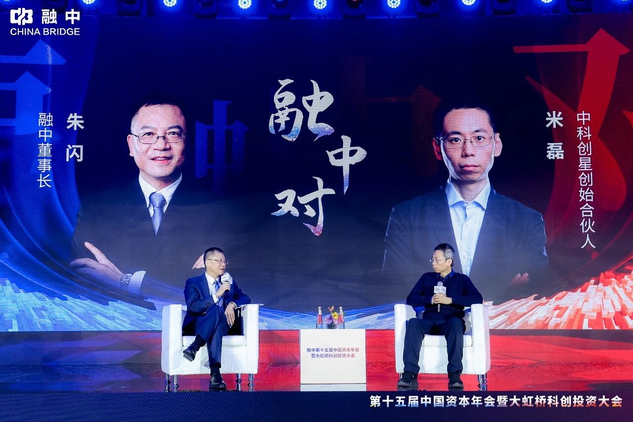 在融中第十五届中国资本年会暨大虹桥科创投资大会现场,融中董事长朱闪对话中科创星创始合伙人米磊,开启了一场融合物理学定律、工业革命史与硬科技信仰的深度交流 。