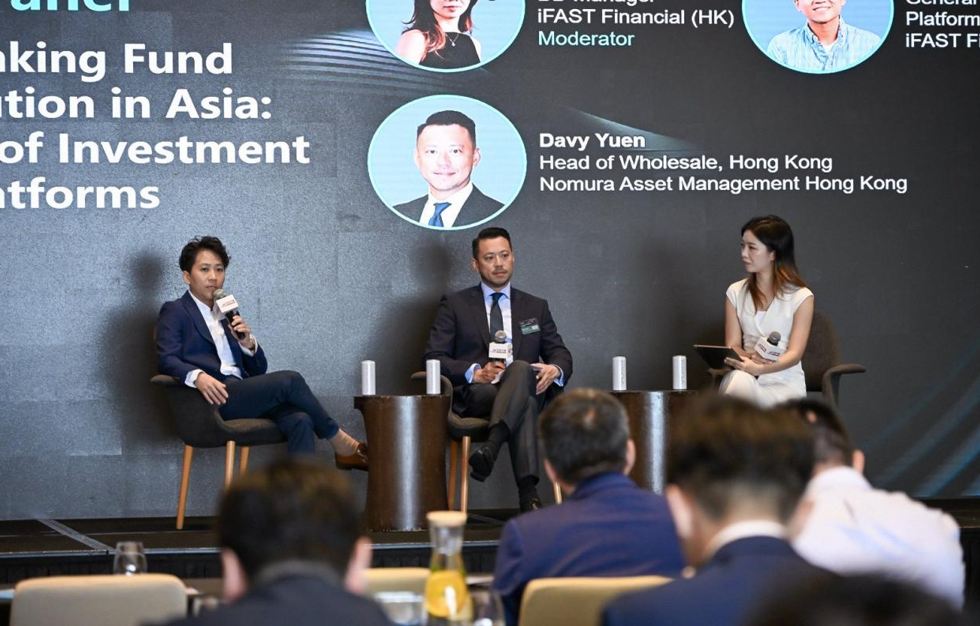 在iFAST奕丰金融(香港)业务发展经理Vickie Chong的主持下,iFAST奕丰金融(香港)平台服务总经理Glory Lau与野村资产管理香港批发业务负责人Davy Yuen共同探讨了亚洲基金分销的新趋势。嘉宾们指出,分销模式正经历从传统银行主导向数字化、平台化渠道的深刻转型。面对监管环境的变化,基金平台在连接资产管理人与终端投资者之间的战略价值日益凸显。