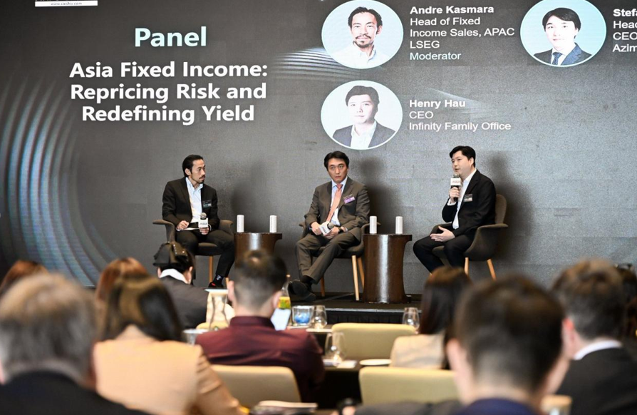 伦敦证券交易所集团(LSEG)亚太区固定收益销售主管Andre Kasmara主持了亚洲固收市场圆桌。Azimut集团亚洲区负责人兼新加坡CEO Stefano Chao与Infinity家族办公室CEO Henry Hau针对全球利率周期分化下的久期风险与收益机遇进行了深度剖析。通过对比亚洲、美国与欧洲信用市场的重新定价逻辑,嘉宾们讨论了保险机构、养老金及主权基金在固定收益配置中角色的演变。