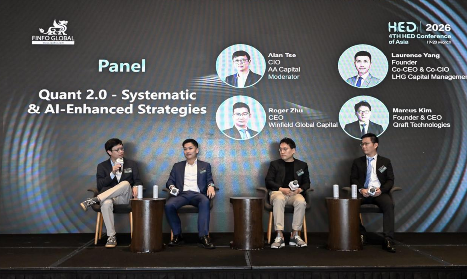 AA Capital首席投资官Alan Tse担任主持,与LHG Capital Management创始人兼联席CEO、联席CIO Laurence Yang,赢领环球资本CEO Roger Zhu,Qraft Technologies创始人兼CEO Marcus Kim共同探讨“量化 2.0时代”。嘉宾指出,利用大语言模型(LLM)从新闻、社交媒体等非结构化数据中提取Alpha信号,正成为量化策略超越传统量价模型的核心竞争力。