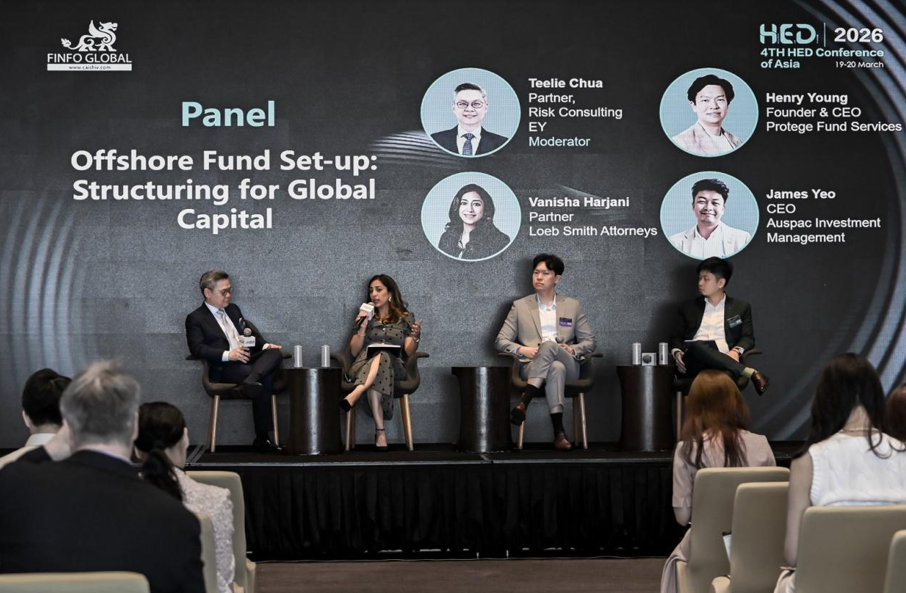 在圆桌讨论“离岸基金设立”中,安永风险咨询合伙人Teelie Chua担任主持,与Protege Fund Services创始人兼CEO Henry Young、Loeb Smith Attorneys合伙人Vanisha Harjani、Auspac Investment Management CEO James Yeo比较了开曼、BVI、新加坡VCC等架构的优劣,并指出在合规趋严的背景下,混合型在岸/离岸架构以及代币化基金可能成为未来3-5年的重要发展趋势。
