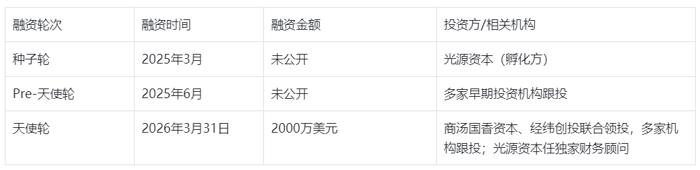 公司2025年2月于上海浦东注册设立,创立半年内已落地三轮融资,具体融资信息如下: