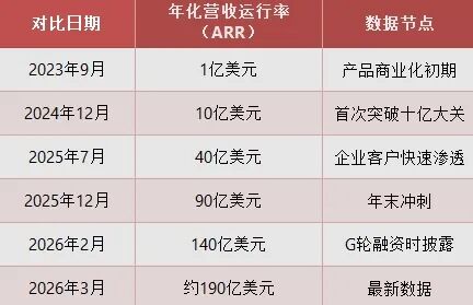 Anthropic的营收增长数据令人瞠目结舌。根据公司官方披露和彭博社、CNBC等权威媒体报道:
