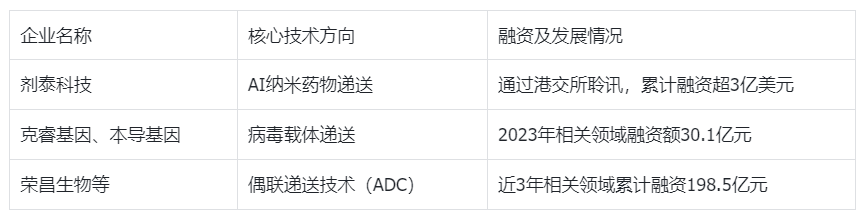 国内药物递送赛道头部企业融资活跃,核心竞品布局如下: