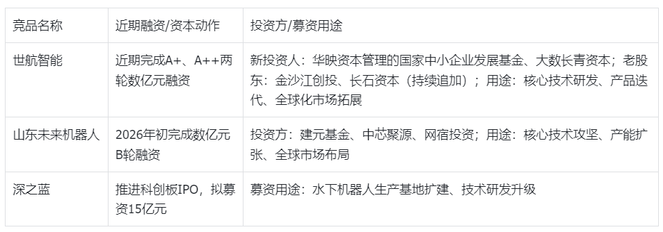 核心竞品近期融资及相关情况如下表所示(不完全统计):
