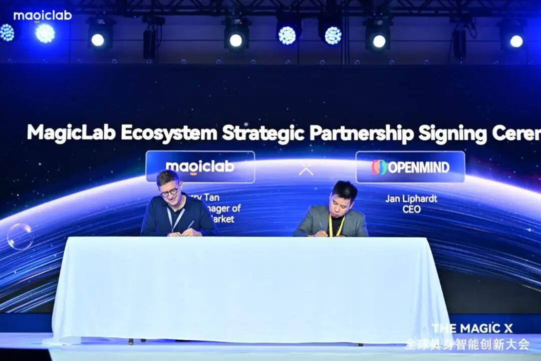 大会现场,魔法原子与硅谷AI企业Openmind、PrismaX AI、Cosmicbrain AI、Physis等生态伙伴达成签约,进一步扩容全球生态版图。据悉,“千景共创”计划将围绕技术互补、资源互通与长期共生三大核心展开:魔法原子将向生态伙伴开放定向开发任务,并提供硬件样机、开发资金、核心技术、项目导流及品牌资源等全方位支持,降低机器人应用开发门槛,提升技术验证到场景落地的转化效率。