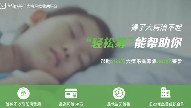 社交众筹平台轻松筹成立于2014年9月,2017年初完成2800万美元C轮融资。2019年7月,轻松筹宣称,平台旗下用户突破6亿,总筹款金额突破360亿元人民币。