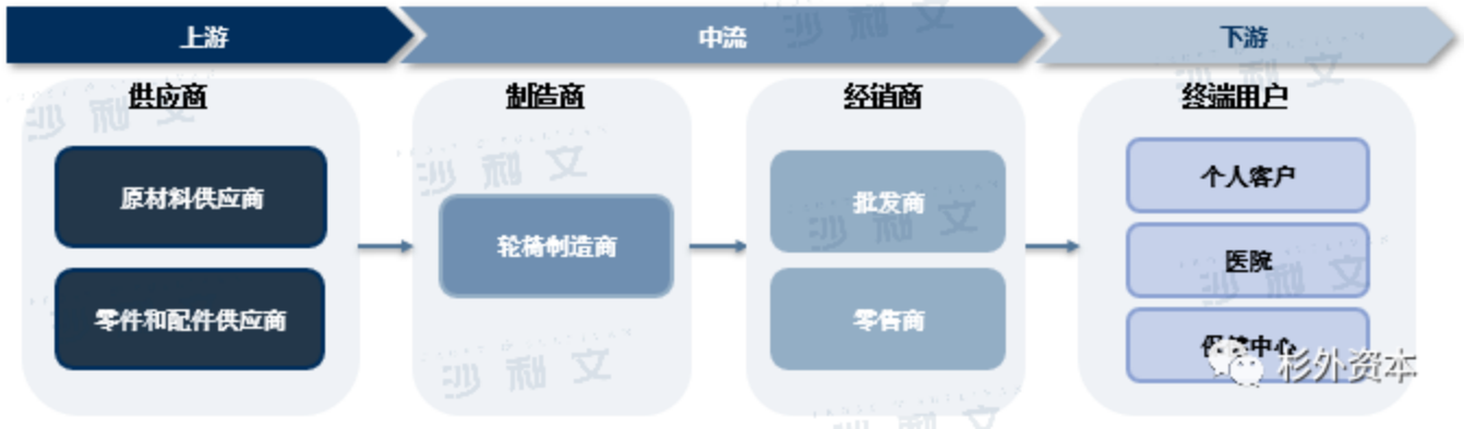 轮椅市场的价值链由上游供应商、中游制造商和分销商以及下游终端用户组成。