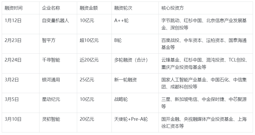 2026年以来,国内具身智能领域披露融资规模超200亿元,10亿元级融资已成为头部企业常态。