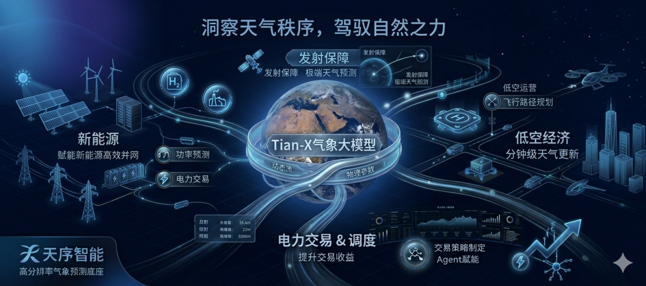当前,气象预测已经是可再生能源出力预测、低空经济运营的刚需和核心因素之一,未来随着电力市场化交易、低空物流安全运营、城市防汛减灾、商业航天发射保障等需求持续释放,气象预测的精准度和时效性直接决定了产业决策的风险、收益、效率与安全性。