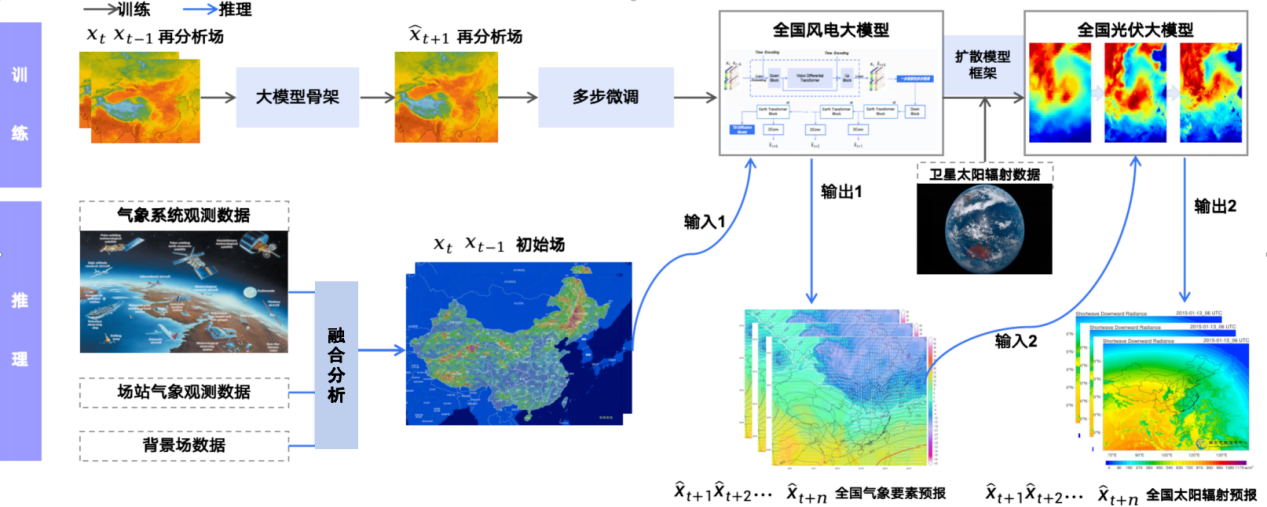 1. 高精度气象预测能力:融合气象数据和行业多源数据,加入流体物理约束,自研了兼具物理机理与数据驱动的气象大模型;首创了Tian-X算法框架序列,结合深度学习的微调、降尺度等技术,大幅提升行业场景下预测的准确性与精细度。