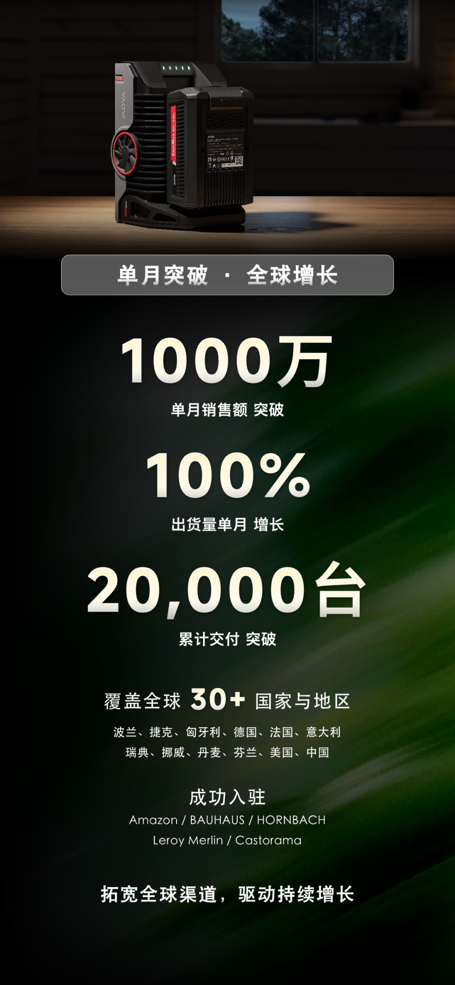 自2026年1月正式出货以来,公司单月销售额已突破1000万元人民币,累计生产规模达到万台级,在手订单持续增长。产品已进入欧洲、北美及亚太多个市场,并逐步扩大覆盖范围。